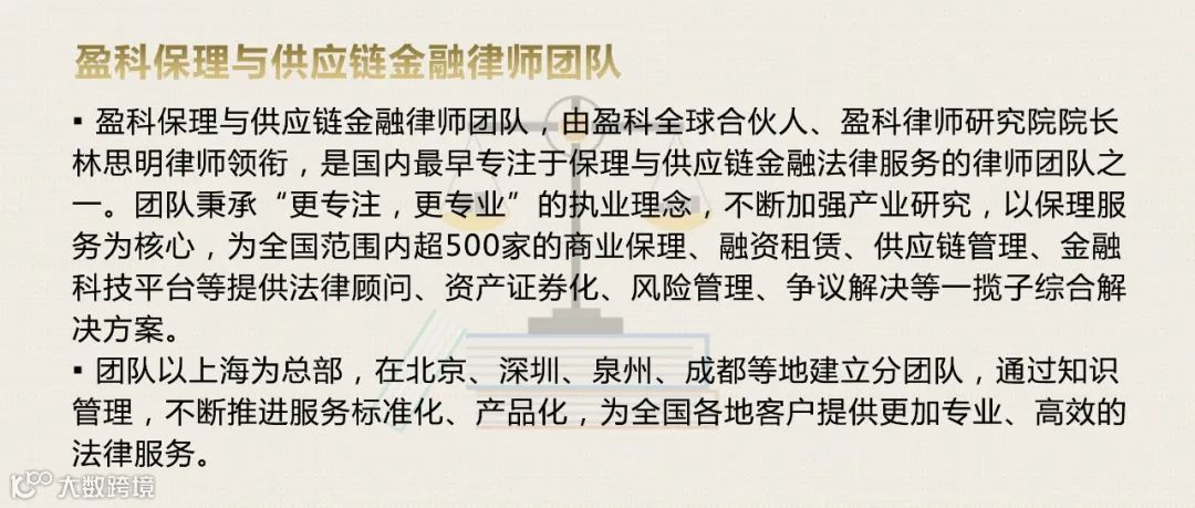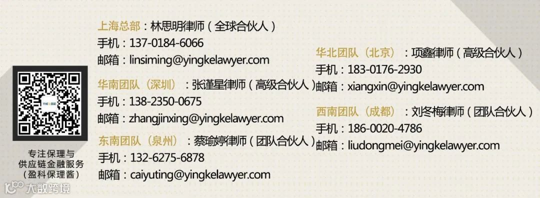 • 本微信文章中的信息仅供一般参考之用,不可视为详尽说明,亦不构成盈科保理与供应链金融律师团队的法律或其他专业建议或服务。盈科保理与供应链金融律师团队不对任何主体因使用本文内容而导致的任何损失承担责任。
