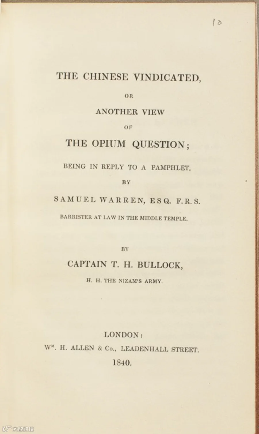 T. H. Bullock著The Chinese Vindicated, or Another View of the Opium Question