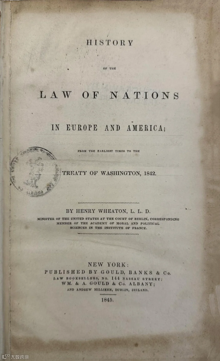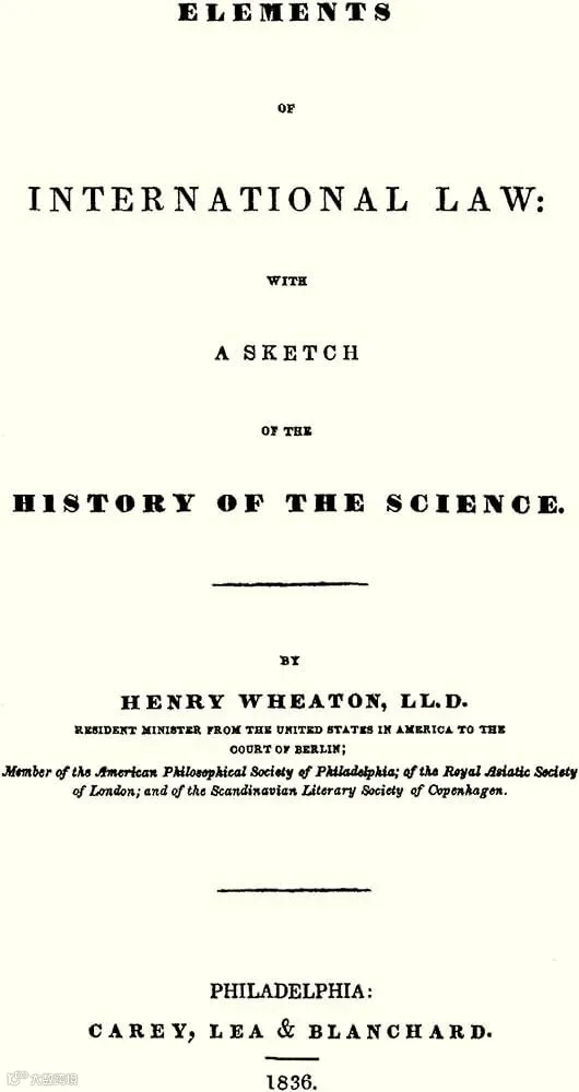 Henry Wheaton著History of the Law of Nations in Europe and America; from the Earliest Times to the Treaty of Washington,1842.