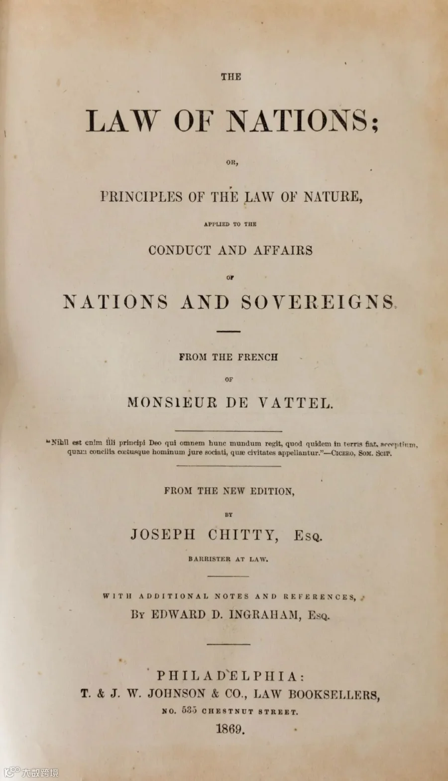 Monsieur de Vattel著The Law of Nations, or, Principles of the Law of Nature, Applied to the Conduct and Affairs of Nations and Sovereigns