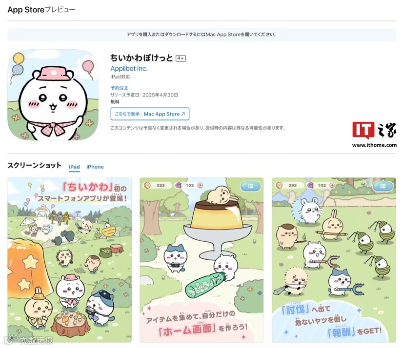 06热门动漫《吉伊卡哇》改编首款手游《Chiikawa Pocket》跳票至 4 月 30 日发售