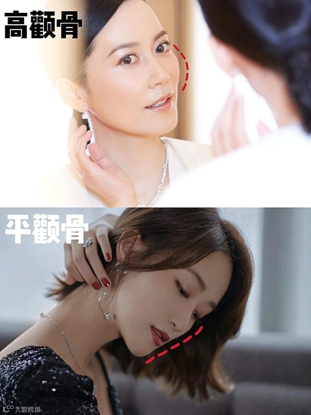 伴随中等突度与面积的颧骨、骨性架构明显、有外扩感,太阳穴凹陷感强,正面轮廓线条流畅度欠佳,这点和广府脸的脸型有一定相似性。