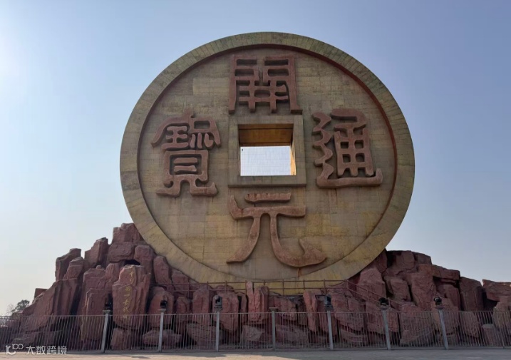 一进入景区,你就会被直径24米、厚4.2米的"桂"字开元通宝铜钱币雕塑所震撼。这座雕塑总高27米,是迄今为止世界上最大的铜钱币雕塑,并入选了吉尼斯纪录。雕塑正面为"开元通宝",背面为"桂"字,是拍照打卡的绝佳地点。