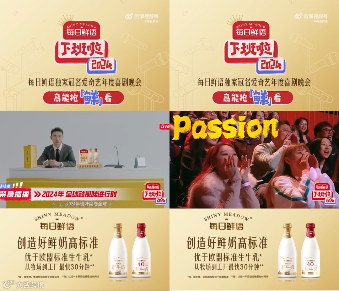 在众多跨年营销中,我们留意到了一个亮眼的案例:每日鲜语冠名赞助了爱奇艺喜剧晚会《下班啦2024》,并合作“喜剧之王”付航拍摄了一只实在是“高”的广告,在以创意出圈的同时,也让每日鲜语的“高品质”深入人心。