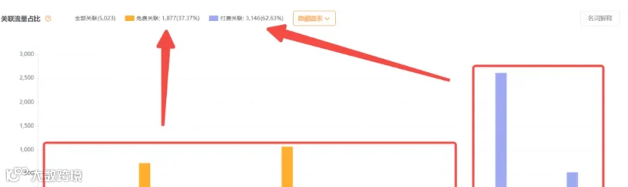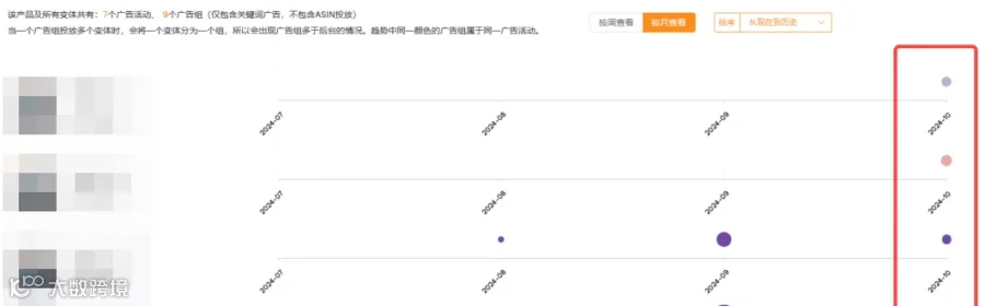 根据卖家精灵——广告洞察,圆圈越小,该组流量词越少,越精准。根据搜索词分布情况,进而推断该产品的广告打法和广告结构布局。