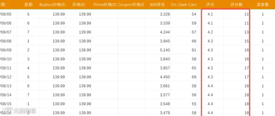 如下图,该产品新品期,7月22日评分2.0,8月5日-8月18日评分从4.1上升到4.6,且4.4到4.6之间评分数未变动,可推断进行了差评删改和测评/邀评,可以去review进行查证。