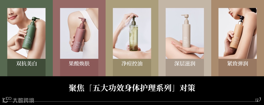 其次,找准个护大方向之后,我们再细分到功效型产品。在中国,面部的功效需求已经被验证,很难突围,但身体功效的需求还在快速增长,需要更优质、更精准的产品去满足消费者的需求。