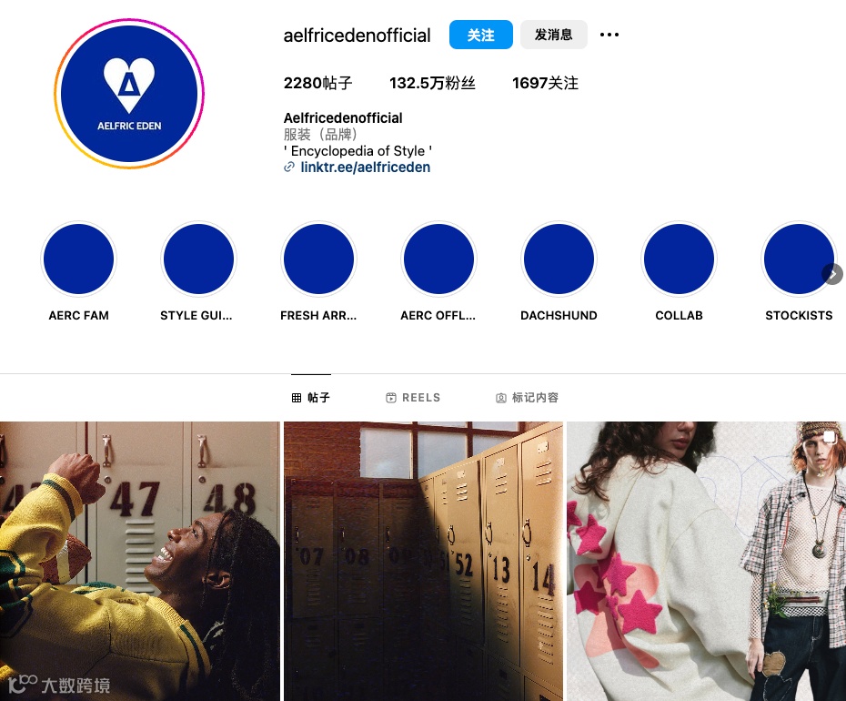 除了有强大的产品力外,作为潮流品牌,Aelfric Eden还需要在社媒平台上打出自己的声势。