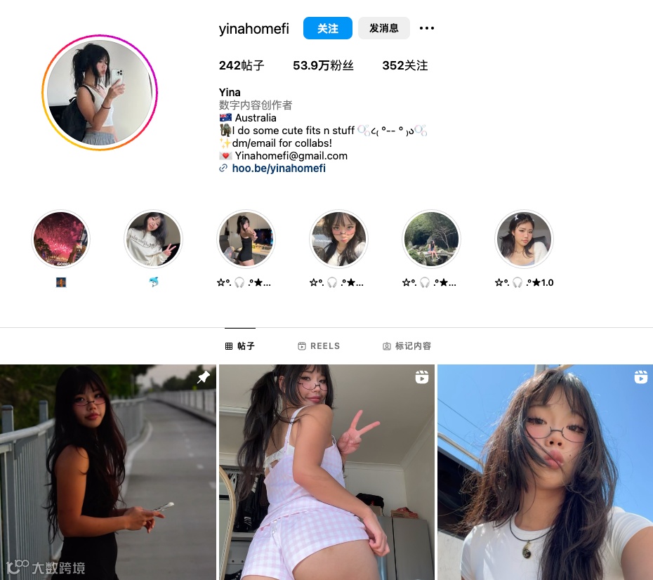 Yina,来自澳大利亚的穿搭博主。她本人具有很强的反差感,一方面,亚裔血统让她看起来很可爱;另一方面,她的身材又很符合欧美主流的审美。