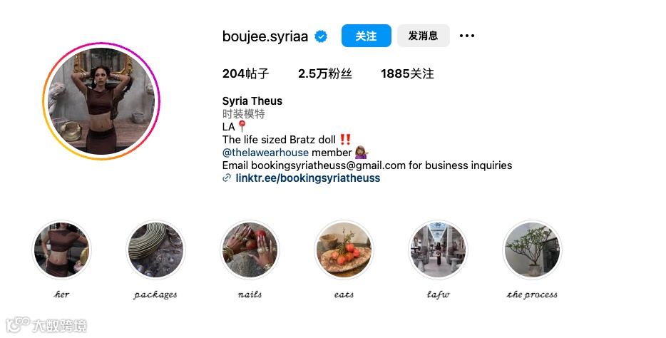 Theus,一位来自叙利亚但目前生活在LA的时装模特,她的穿衣风格非常的混搭,混到什么程度呢?经常出现下半身丝袜高跟、上半身穿的却是球服。但是多元的生活经历造就了她的独特审美,初看她的帖文你会觉得奇怪,但细看又觉得很有意思。