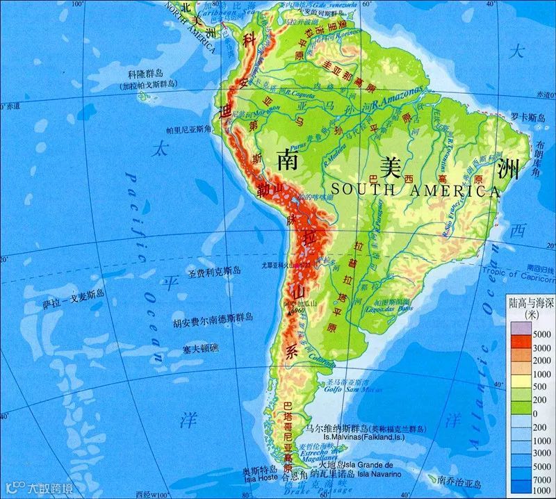 b,拥有世界面积最大的巴西高原(面积500多万平方公里),高度在300-1500米之间,却没有崇山峻岭和地震,具有准平原性质(对比下青藏高原,就知道巴西高原多适宜人类生存)。