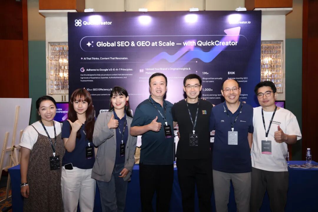 作为合作伙伴,我们团队的市场部门、销售部门以及我和海鹏都参加了大会。并且有两位我们的社区小伙伴作为志愿者帮助我们在站台提供服务。对于我自己来讲,通过这次大会认识海外的一些同行并建立联系是此行的首要目的。从现在复盘看,这个目的基本达到了。在大会上,我有幸结识了Jetson, Aleyda, Owen, Zac, Prezmek等海外朋友,并且在会议结束后开始通过进一步约线上会议来商讨后续可能的合作。如果没有这次大会的面对面交流,我们很难直接通过线上去建立联系来探讨后续的合作。而这些海外朋友,有的擅长PR,有的则在Link Building方面有多年经验。对于我们服务的品牌出海客户,这些朋友显然能够更好地提供帮助。当然,我们作为一个出海AI SaaS,也可以通过与这些朋友合作让QuickCreator的产品在海外能够更好地服务客户。