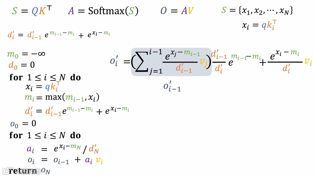 然后重复刚才的在线 softmax 更新步骤,更新 。