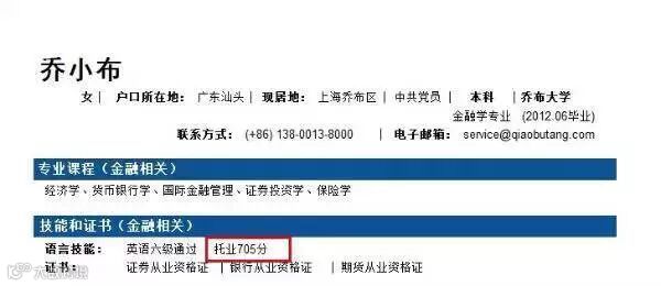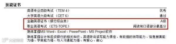 这份金融专业简历模板就注明了托业的具体成绩。