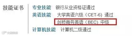 像以下银行简历模板中写的,最好写全称,以防有的HR不知道简称,还要写明等级。