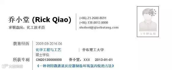 专利作为应聘成功的重要筹码,要着重突出。如果你的专利恰好和应聘的公司对口,又是针对某一产品并且有希望投入生产的,你想强调你有这个能力做面向市场的产品,那么就把专利单独提出放在简历开篇最显眼的位置。化工简历模板示例: