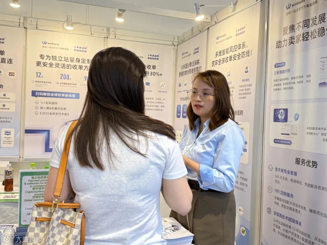 展会现场,WINTOPAY 展位始终是焦点区域,众多跨境企业负责人驻足咨询。他们或询问不同市场收单方案,或探讨独立站支付转化难题,业务团队则通过现场演示、案例拆解,让参会者直观感受定制化方案的优势,不少企业当场表达合作意向。