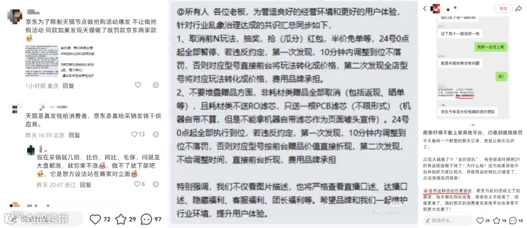 而且有人指出京东不止针对抖音,还要求商家退出天猫抢购、淘金币等活动。