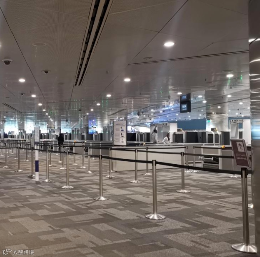 ①多哈机场的中转标识系统设计清晰,登机口按A、B、C、D、E五个区域划分,乘客只需确认自身航班所属区域,即可快速定位登机口位置,无需复杂寻找。