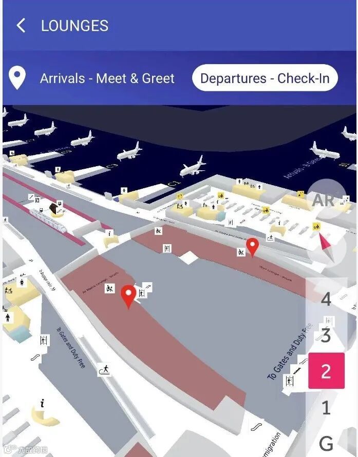 在出发前,可以从手机应用商店下载官方应用“HIA Qatar”。能实时查询机场内贵宾休息室、登机口、卫生间、便利店等设施位置,并支持根据用户当前地点,生成精准的路线导航,避免在机场内迷路,尤其适合首次在多哈转机的乘客。