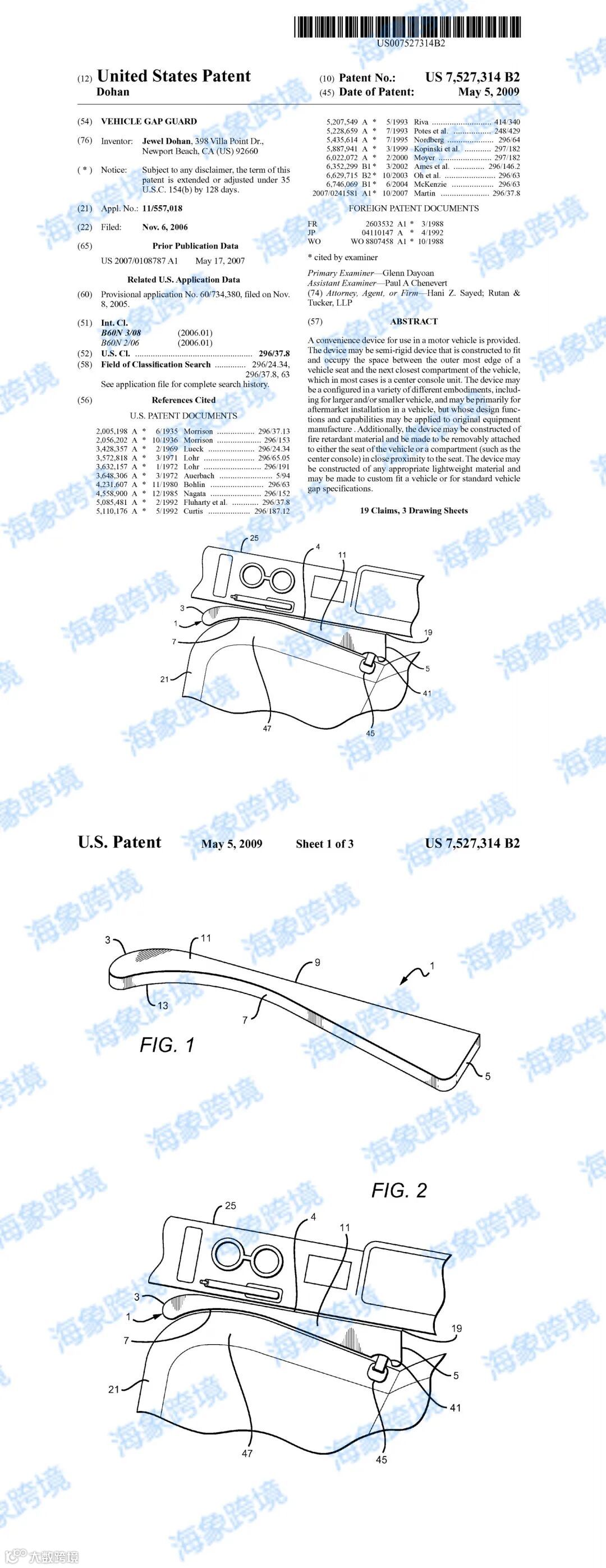 原告 JONATHAN KOTYK 是本案专利的受让人,案件涉及专利产品是是一款车辆间隙防护物,将其插入座椅和中控台之间的缝隙中,能有效防止手机、钥匙、硬币和其他小物品滑入汽车座椅缝隙中。由于是发明专利维权,类似材质和使用方法等均有侵权可能,请相关卖家注意排查避雷!