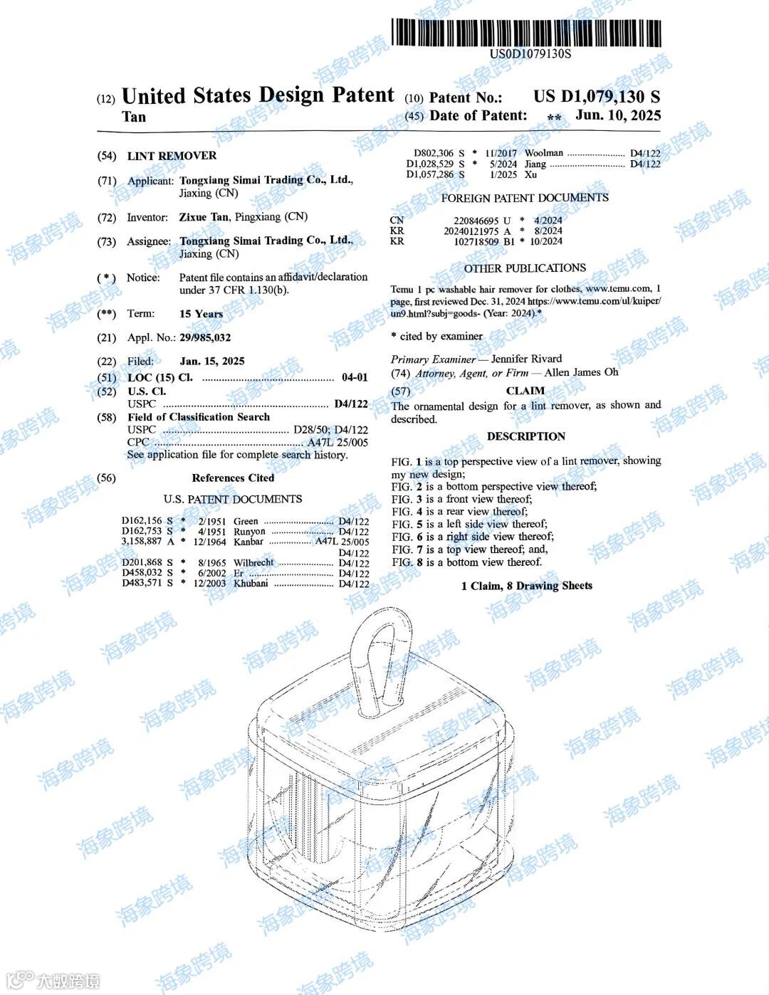 本案为国人原告,案件专利为密封状态,小编查询到原告名下有以下专利信息。案件涉及专利产品是一款除毛器,具有较强的粘附力,可有效去除衣物、家具和地毯上的宠物毛发和碎屑。