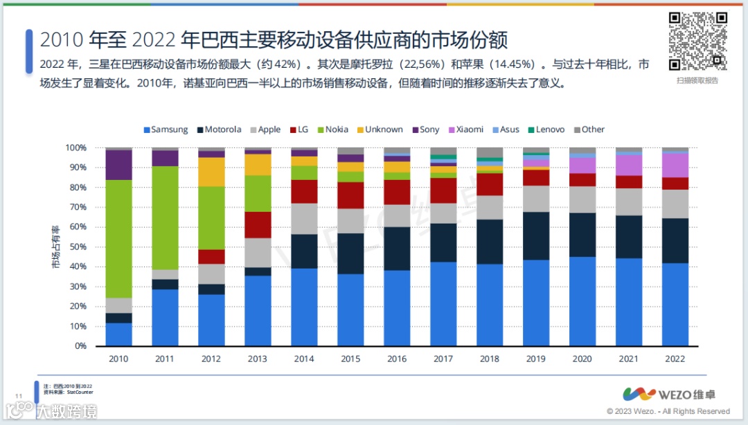 这份报告中涵盖了主流的三个消费电子产品:手机、笔记本电脑、平板电脑在巴西市场中的表现,以及使用人群的趋势调查数据,为国内想要出海巴西的消费电子企业提供了全面、详实的参考依据。