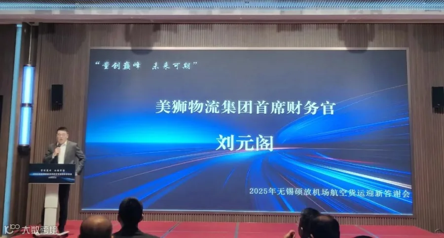 美狮物流集团首席财务官刘元阁先生代表集团出席活动并发表感谢致辞。在发言中,刘元阁先生诚挚感谢了无锡苏南国际机场集团、苏南硕放国际机场集团以及各驻场单位。正是得益于各方在无锡至墨西哥航线上给予的大力支持与帮助,美狮物流集团在跨境物流运输环节得以更加顺畅地运转,进而为客户提供更优质的服务。