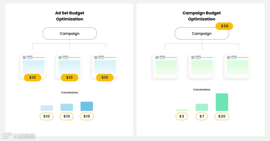 在广告投放中,正确的预算优化策略可以最大化广告效果。Facebook提供了两种预算优化工具:广告系列预算优化(CBO)和广告组预算优化(ABO)。现在,让我们看看这两种预算分配方法有什么不同: