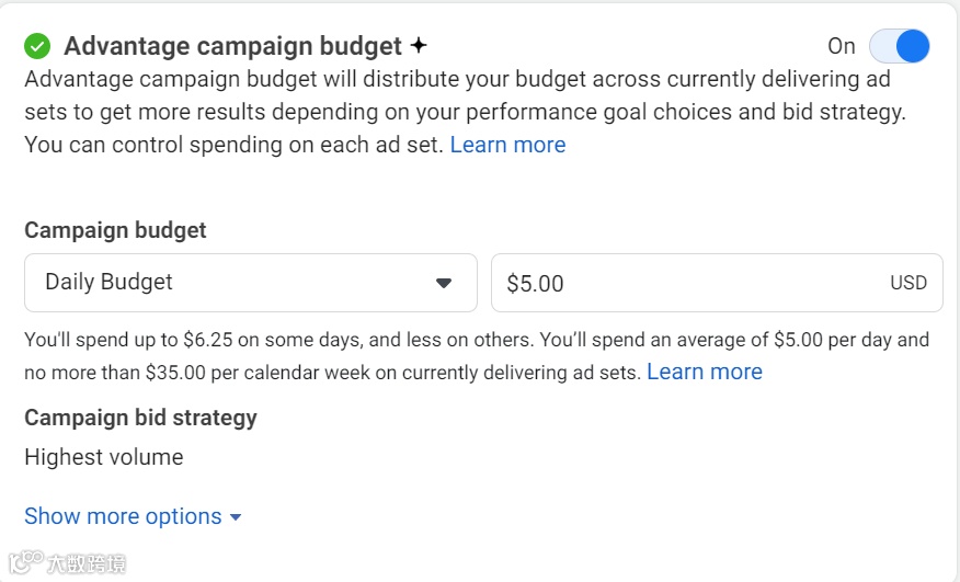 它指的是在广告系列的总体层级上设定预算,随后Facebook的算法会自动进行预算分配的优化,确保将更多的预算倾斜给表现最抢眼的广告组,这减轻了人为调整预算的压力。