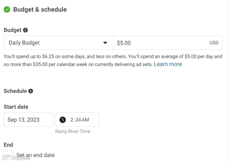 选定目标广告组后,向下浏览至“预算与时间安排”部分。在这里输入预算金额,并选择是“每日预算”还是“总预算”。此外,你还可以设定广告组的运行起止日期。
