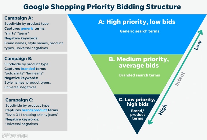 Google购物广告相较于搜索广告和展示广告,其独特性在于不依赖于关键词和群组竞价机制。正因为这一差异,的出价策略展现出了独有的特点。而其内置的优先级结构,则为用户提供了清晰且具体的出价调整指导。