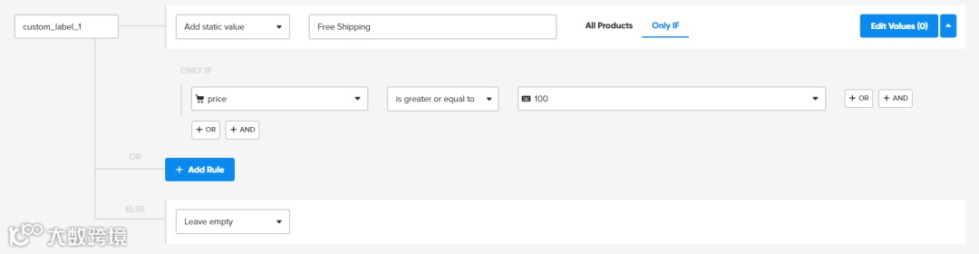 此外,你还可以利用 DataFeedWatch 中的“静态值”创建规则,通过自定义标签进一步细分特定产品或产品组。这种方法可以让化妆品零售商能够依据季节、销售活动、促销、利润率、价格点和性能等众多属性对产品进行细分: