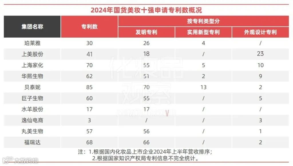 “化妆品行业的发明专利一般包含了新原料、新方法和新组合,强调从0到1的创造过程,‘含金量’最高。”某护肤品牌研发总监如是表示。