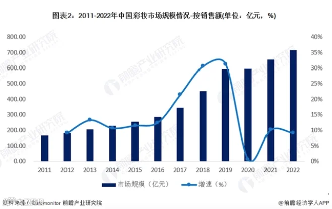 据前瞻产业研究院数据显示,自2020年迎来断崖式下滑后,2022年我国彩妆市场规模达715.95亿元,同比增长9.05%,但仍未回到疫情前的平均水平。