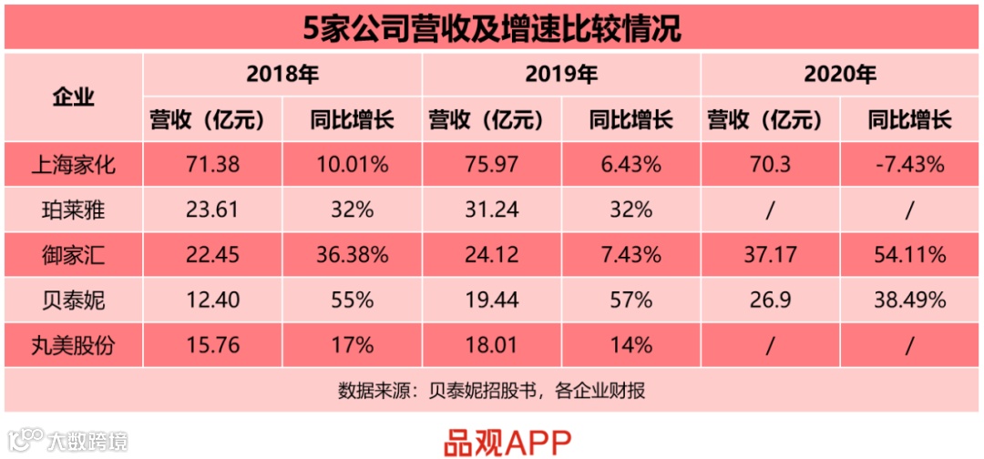 从营收规模上来看,贝泰妮次于上海家化、御家汇,但高于丸美股份。