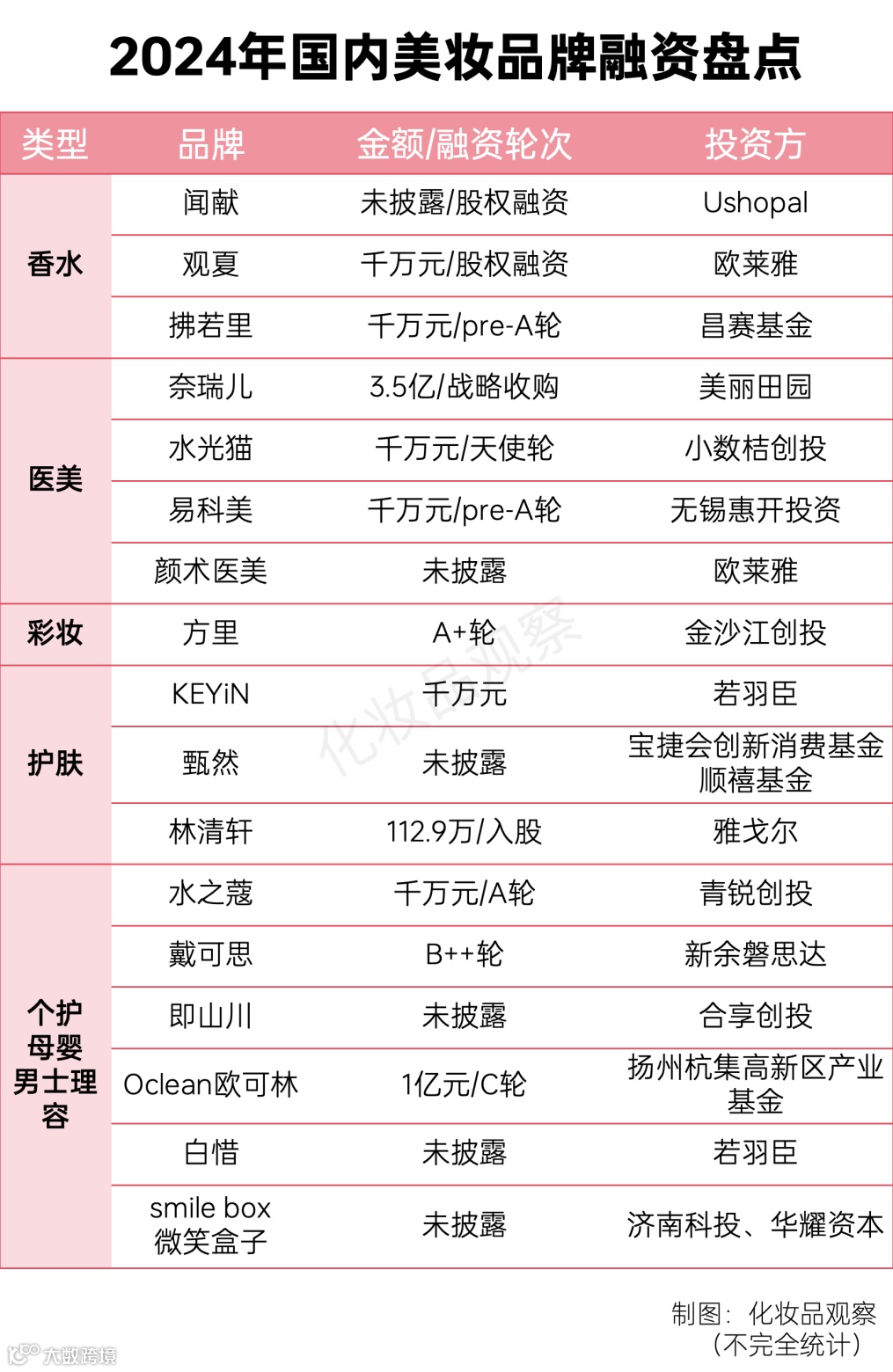 在经历了大起大落之后,当下的美妆投融资市场堪称寒风刺骨,但在如此艰难的大环境下,仍有一些品牌获得了资本青睐。《化妆品观察》盘点了2024年针对国货美妆品牌(含个护)的投资事件,看看其中蕴含了哪些风向?