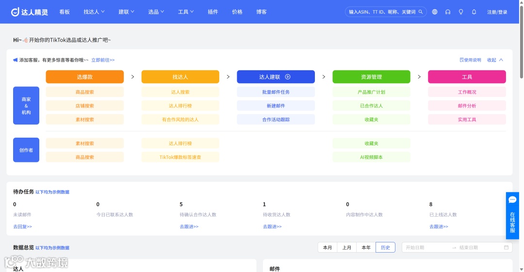 达人精灵是卖家精灵官方生态旗下,专为跨境电商卖家打造的TikTok数据分析与选品工具。