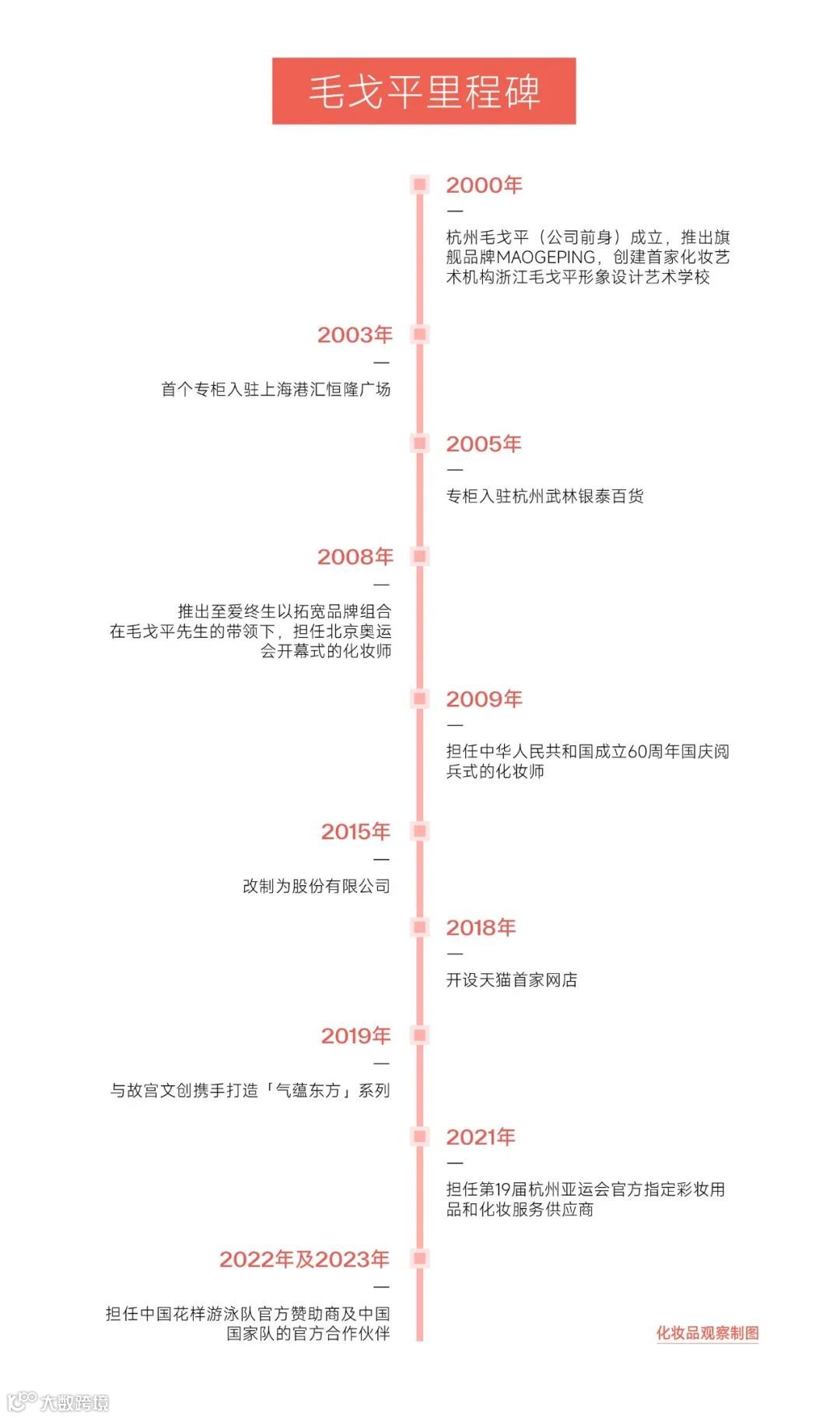 2000年,杭州毛戈平(公司前身)成立,推出旗舰品牌MAOGEPING,创建首家化妆艺术机构。