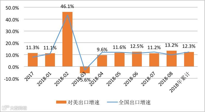 今年6月中旬以来,随着中美互相加征进口关税的措施不断加码,中美贸易冲突不断升级,人类历史上最大规模的贸易战终于爆发。国内外主流看法认为,中国对美出口远大于从美进口,享有巨额双边贸易顺差,因此,美国更容易成为贸易战的赢家。6月15日,美方宣布第一批对500亿美元中国商品进口加征25%的关税;6月16日,中方宣布同等规模和力度的反制措施。7月6日起,340亿美元进口加征关税措施相互生效;8月23日,剩下的160亿美元进口关税措施相互生效。期间,7月10日,美方宣布第二批对2000亿美元中国商品进口加征10%的关税;8月3日,中方宣布对600亿美元美国商品进口加征5%~25%的关税。现在,我们可以基于中美双方统计的今年前8个月商品贸易数据,初步评估第一批关税措施对两国贸易的影响。需要指出的是,第二批关税措施于9月24日正式生效,不在本文的研究范畴。同时,本文也不深入探究贸易战对两国经济金融的其他影响。