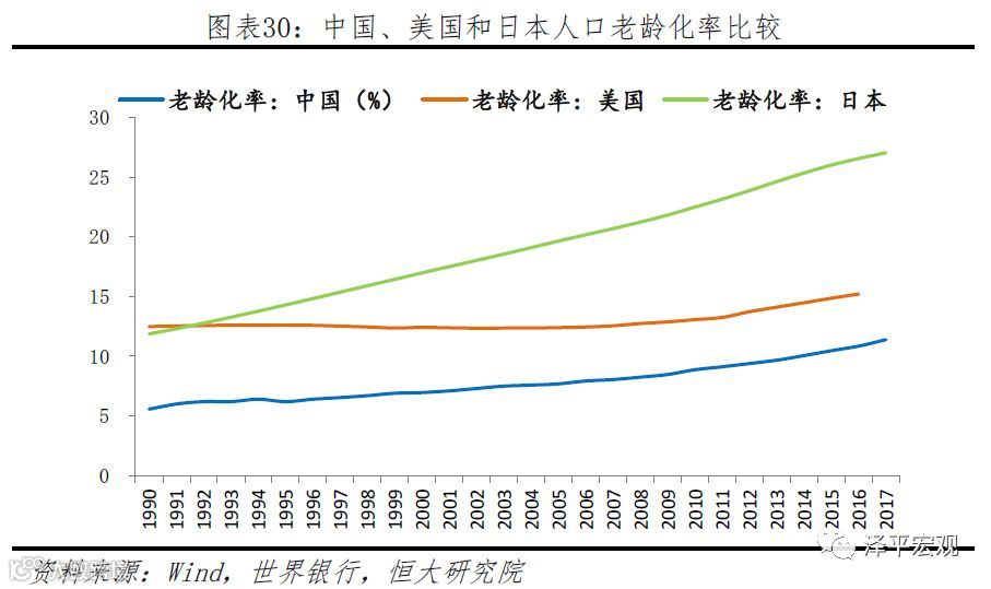 第七,中国人口总量为美国的4.3倍,劳动参与率高于美国,老龄化率比美国低,但增速较快。