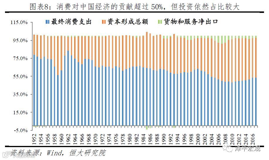 近期在居民杠杆过高、房价高企、资本市场下行财富效应消失的背景下,居民消费降级,需要提高居民收入分配占比、提高民生社保财政支出解除后顾之忧、通过政府再分配降低收入差距、通过放宽市场准入和竞争增加优质产品和服务供给,促进居民消费。2017年资本形成总额占比为44.4%,对投资依然高度依赖,推升杠杆率上升;美国的私人投资占比16.6%。