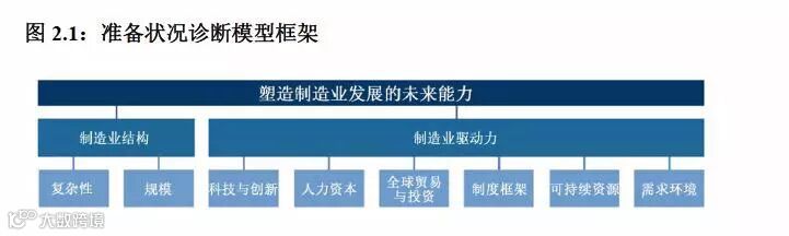 报告主要提供了两个评估标准:一是该国应对未来制造业发展的准备状况(包括当下的制造业结构),二是影响制造业发展的驱动因素,并赋予了不同的权重。