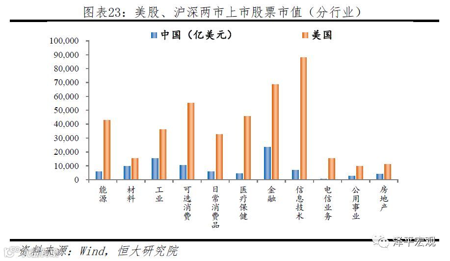 中国以银行主导的间接融资为主,风险偏好低,倾向于向国企、传统低风险行业放贷;美国以直接融资为主,风险投资发达,有利于推动实体经济和高科技的创新。2017年中国间接融资占比75%,直接融资占比25%;美国直接融资占比达到80%,间接融资约占20%。