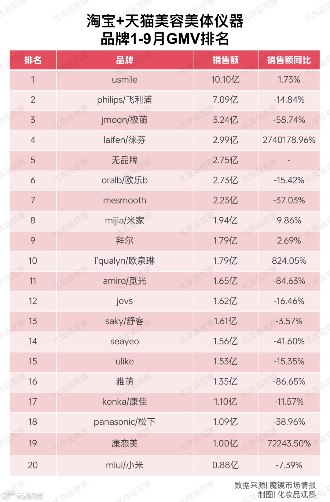 唯一一个GMV超10亿的品牌usmile,也是国货,该品牌聚焦于电动牙刷产品。
