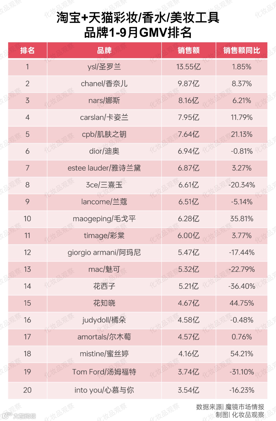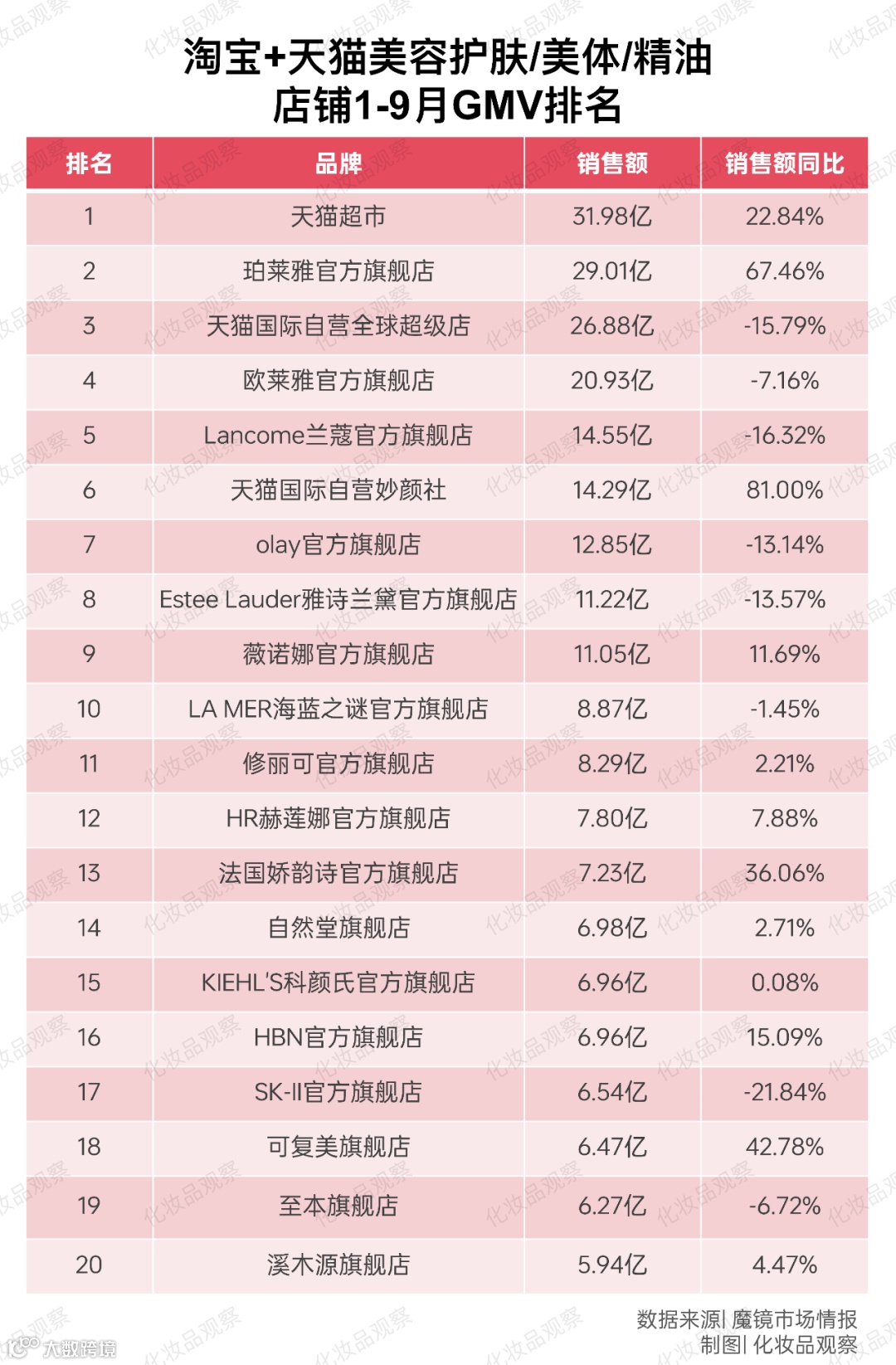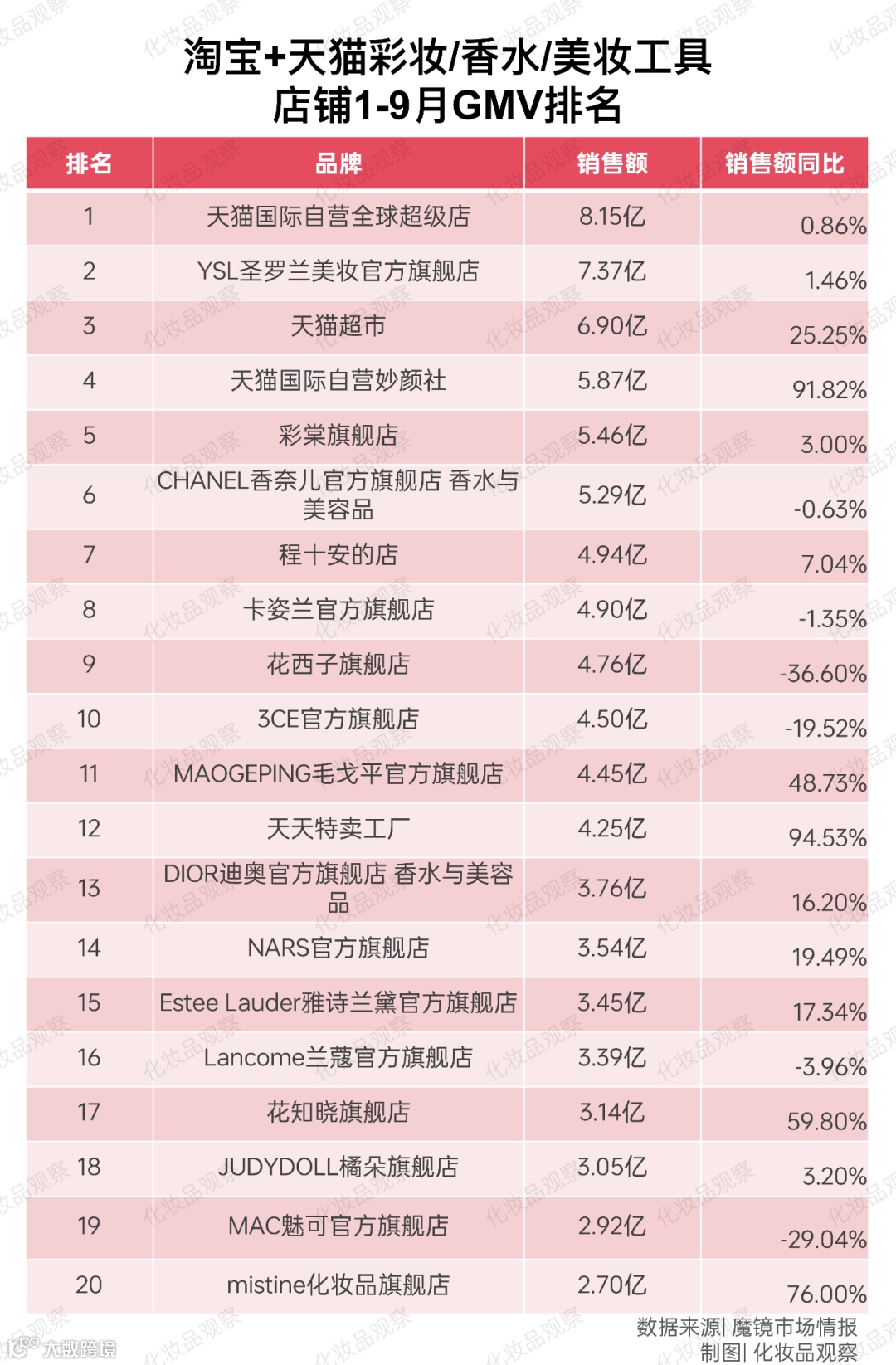 双十一开卖前夕,《化妆品观察》联合魔镜市场情报数据,对淘天美妆今年前三季度品牌数据进行了剖析。
