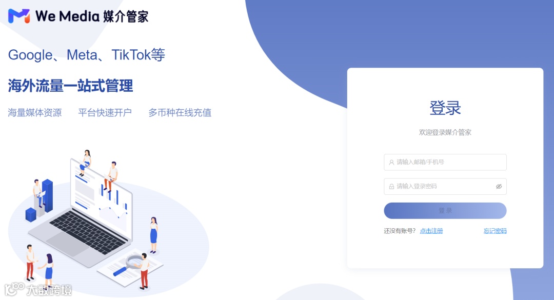 目前,WeMedia媒介管家主要对Meta、Google、TikTok为主海外优质流量平台提供一键开户、在线充值及结算以及多媒体平台账户管理等功能。