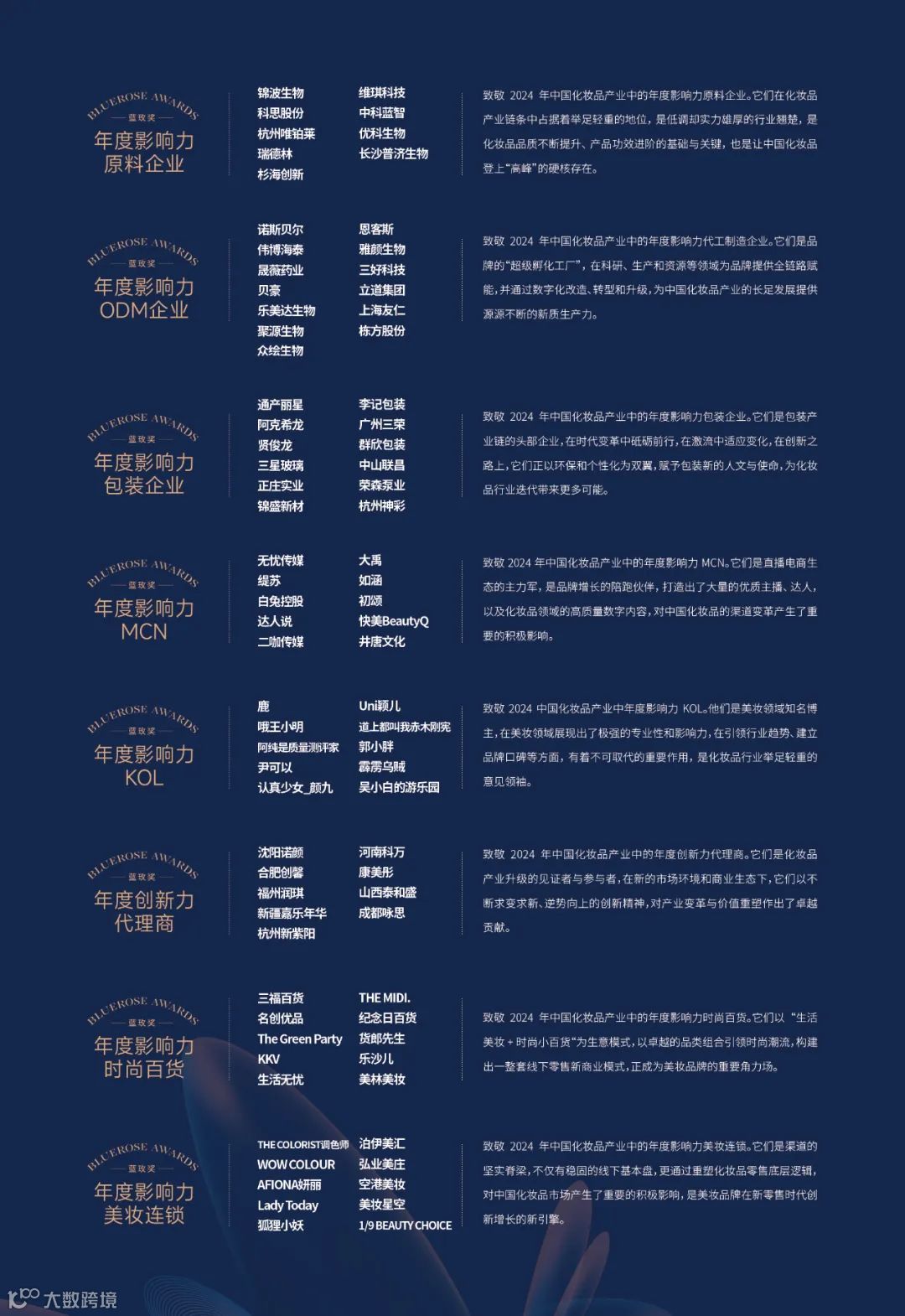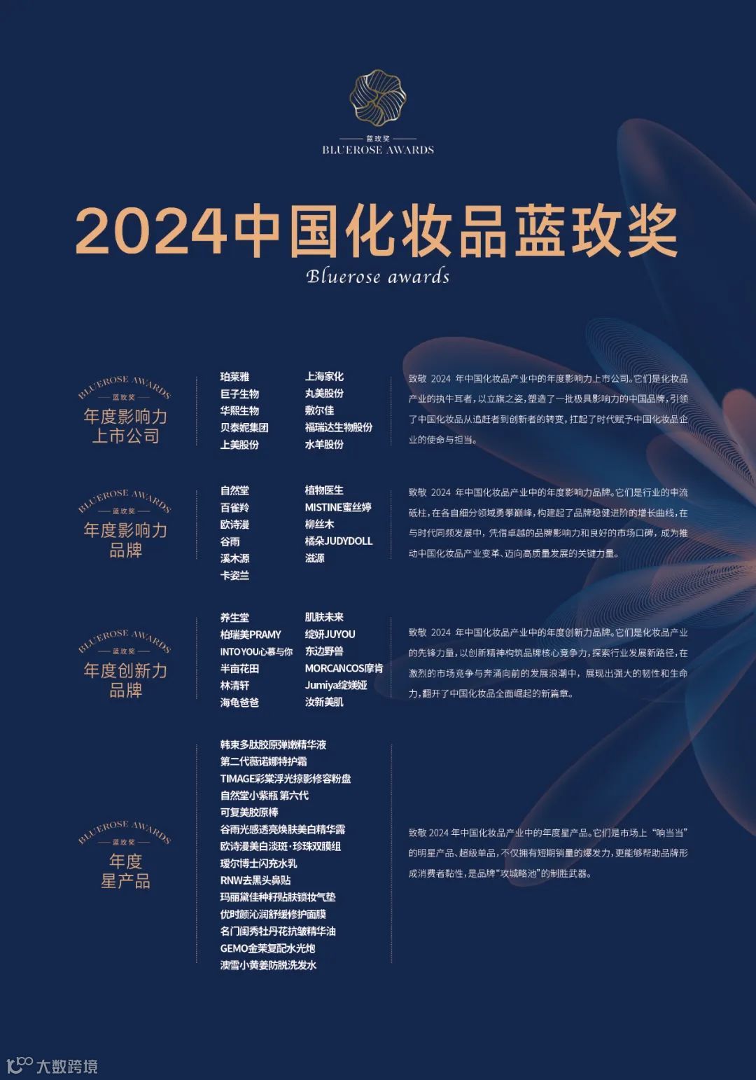今晚,品观重磅发布了2024中国化妆品蓝玫奖名单。