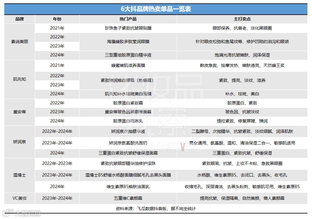 近期,《化妆品观察》联合飞瓜数据,重点聚焦历年GMV突破5亿元的抖品牌进行了拆解。文章将从以下五个方面展开:
