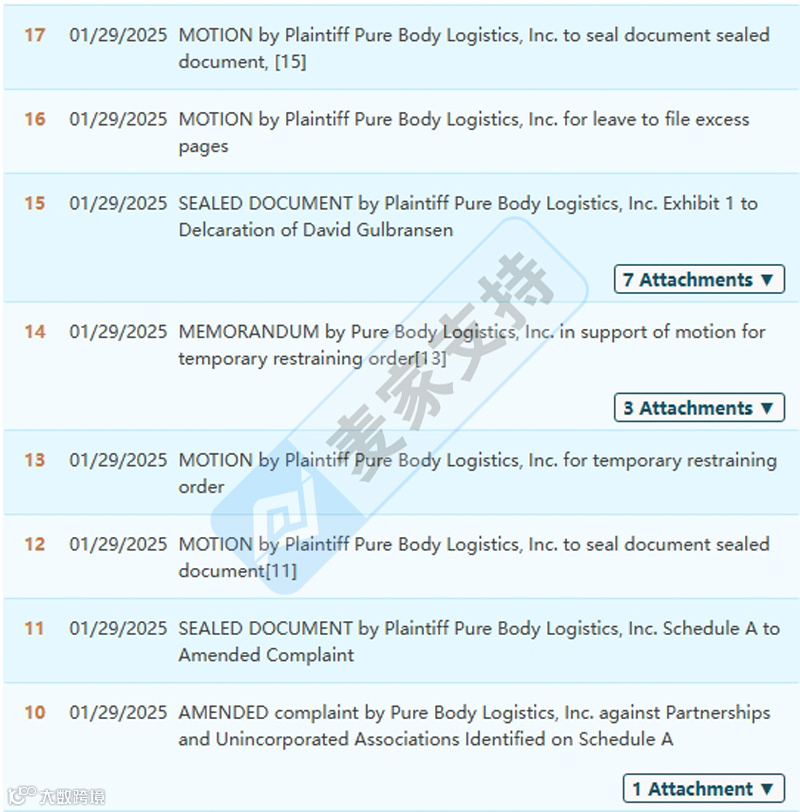 本案为David律所代理Pure Body Logistics就Powerball商标发起的维权案件,该品牌方并非首次维权,早在2023年11月就曾委托David律所就案件编号为23-cv-15811的案件维权过,跨境卖家切勿大意。